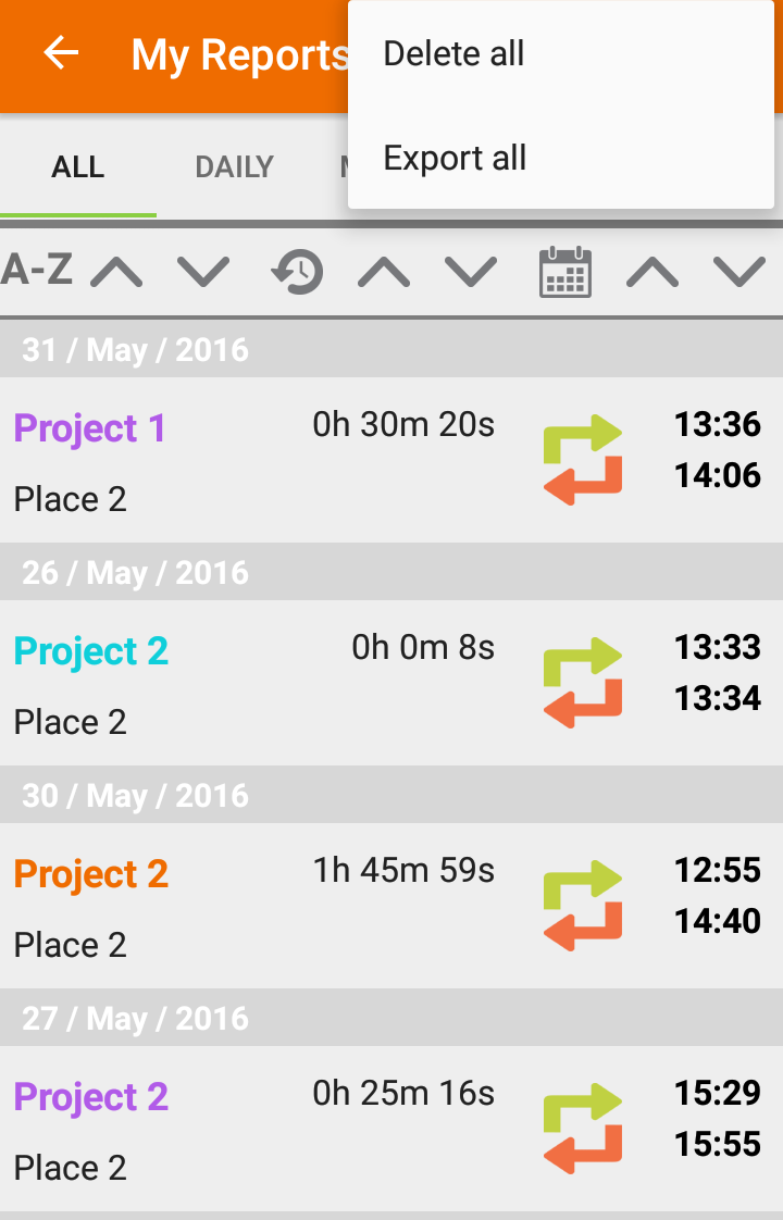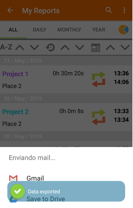 - With this you can export all the time reports in the application, creating a CSV (comma separated value) file. The application will give you some options to share the file.