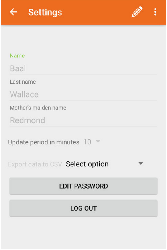 In this page you can edit your name, time update interval, password, close your current session and export the activity reports. |