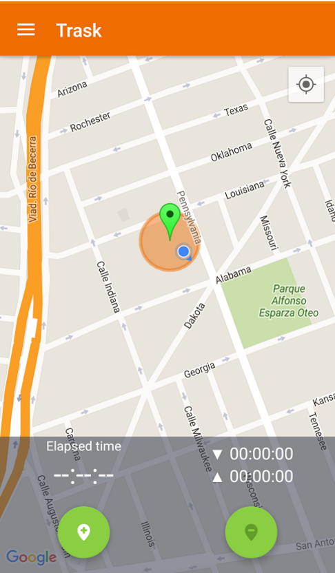 The first screen shows your current location in a map. Some indicators are shown on the map according the following:
