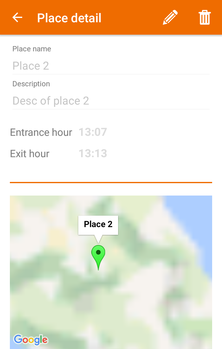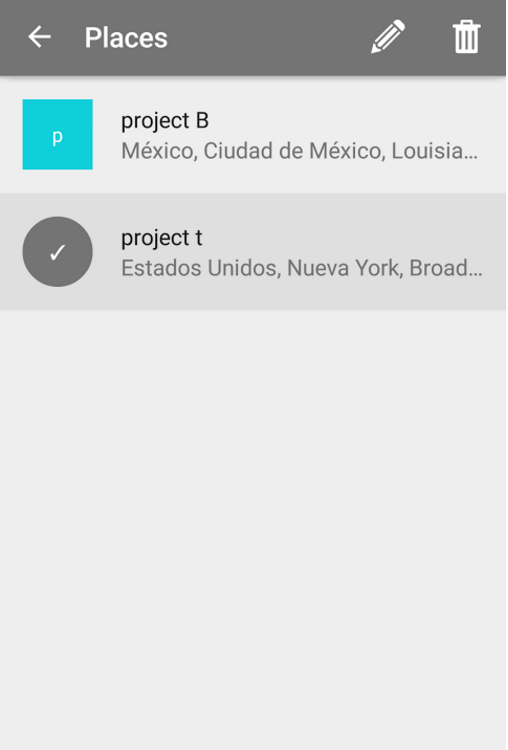 2. You can edit or remove a place, going to the “Places” menu, then in the Places list hold for a few seconds the Place of interest, this action will enable the edit and delete mode at the top of the screen (pencil and trash icon):