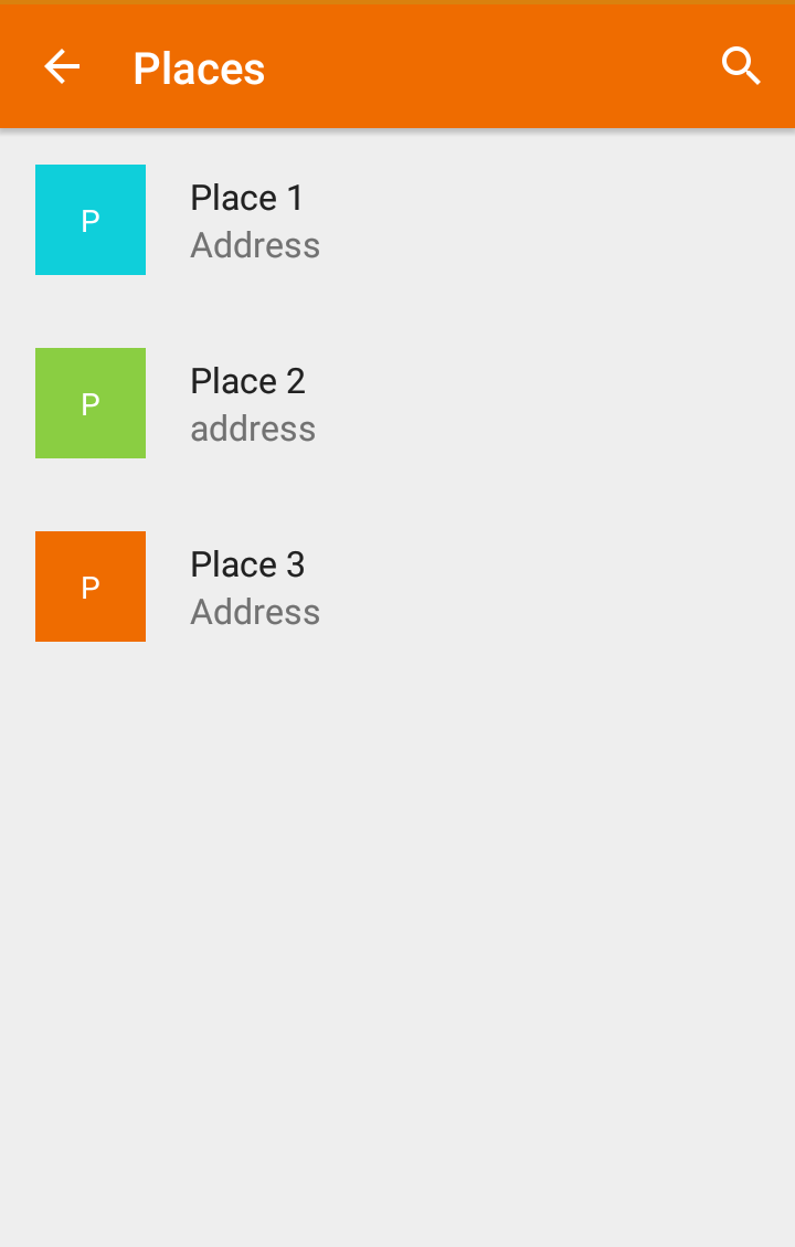 On the top of the screen you can find a search icon, by tapping this icon you can type the name of the project or place you are looking for, and the list will be filtered automatically. |