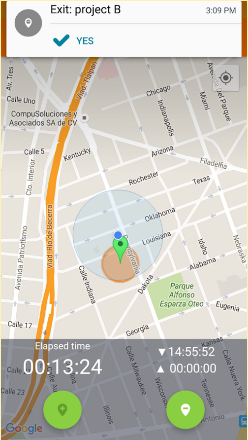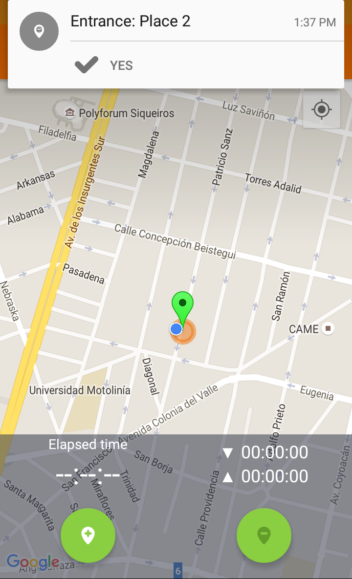 - The second option is through the push notification received when the device detects that you are out of the Place (Orange Circle).