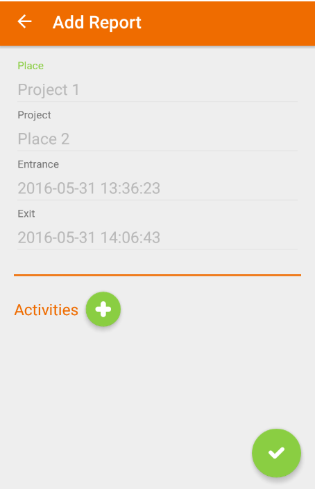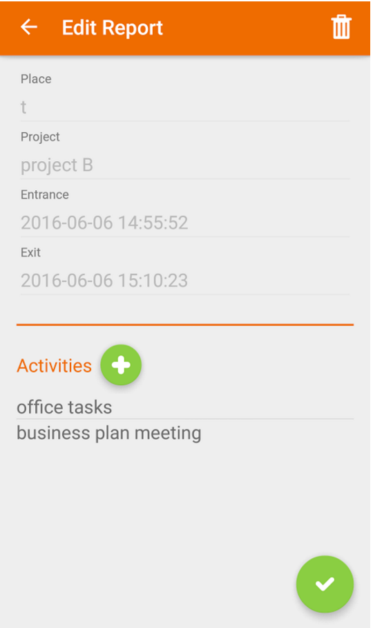 - Every time you “check out” from a place, a report will be generated and you will be asked to add the executed activities.