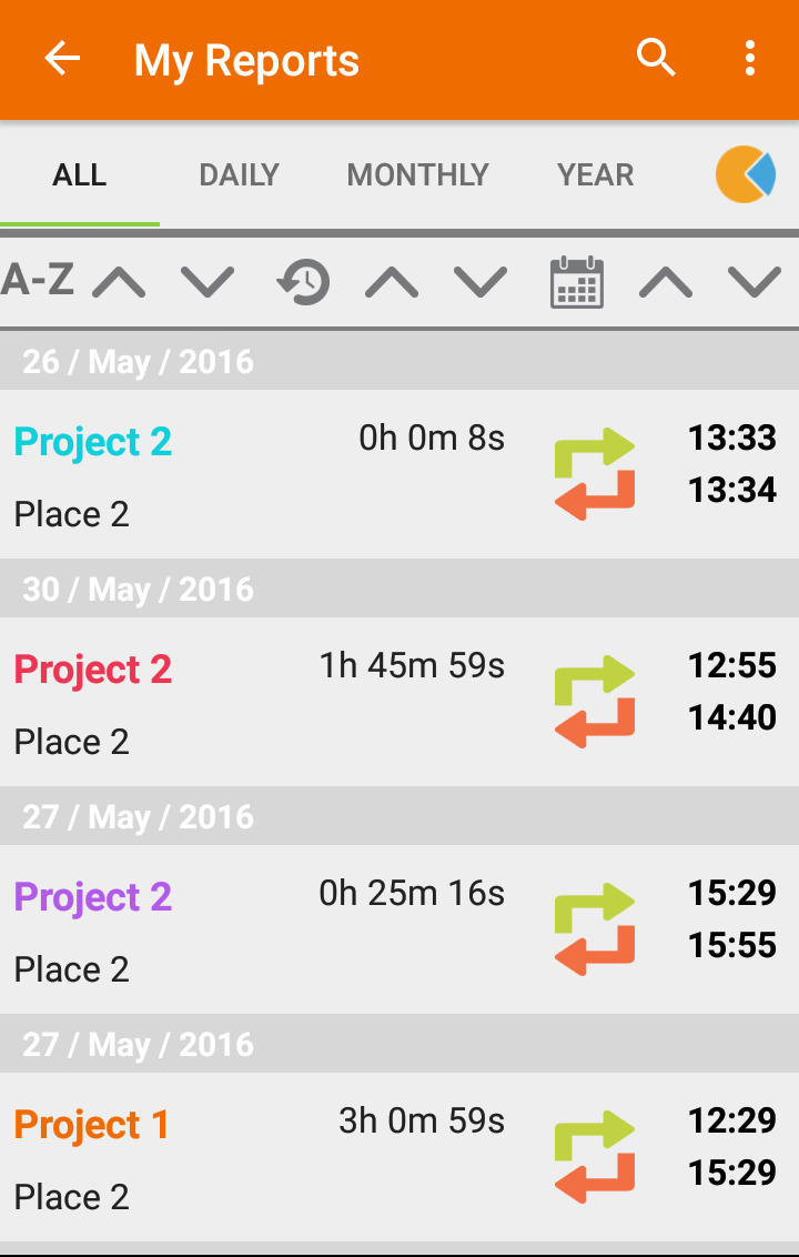 - Within the "activity report" menu, you can search for each day, month or year the executed activities in any project.