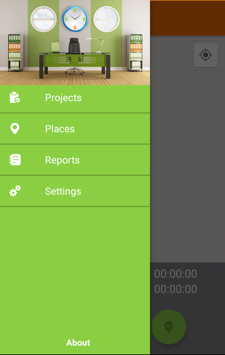 The application menu has 4 main options: Projects, Places, Reports and Settings.