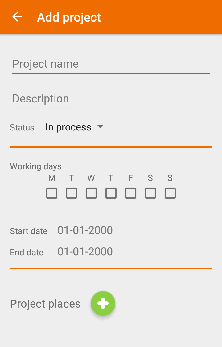 If you want to create a new project, select the plus icon (+) at the bottom of the screen, and fill the required information.