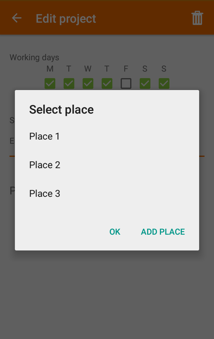 Is a location to execute activities related to a project. You can have one or more Places assigned to a project. |