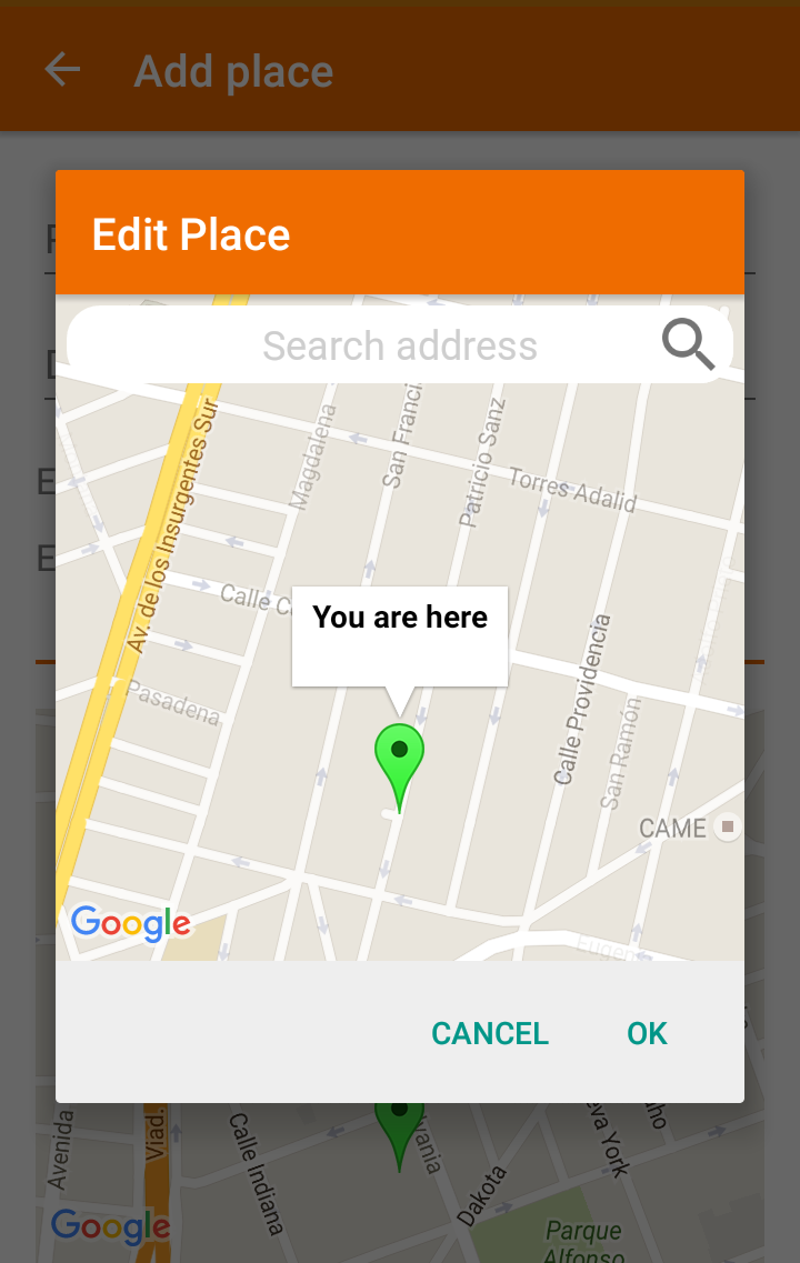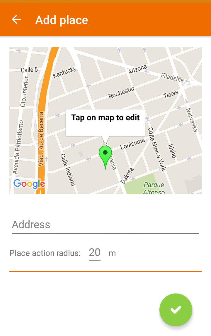 - Also the Place requires a radius metered in meters (Orange Circle), this value indicates the size of the area representing the Place.